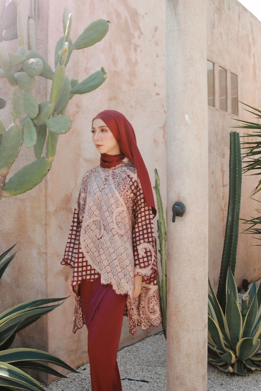 Material : Soft Lace on top of Semi-Silk embroidered batik with classic motives handmade by artisan’s stamping method. It's silky, timeless & subtle.